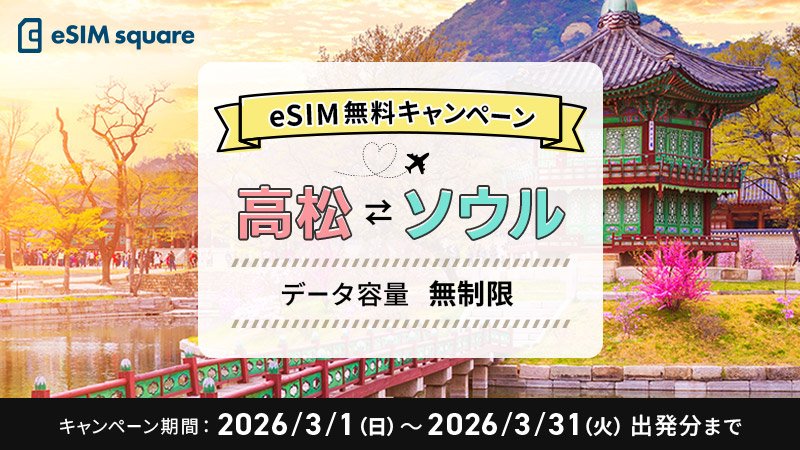 【テレコムスクエア×高松空港振興期成会×高松空港㈱】高松空港発のソウル便往復利用者に無制限の韓国eSIMを無料配布 春休みの韓国旅行を快適な通信でストレスフリーに