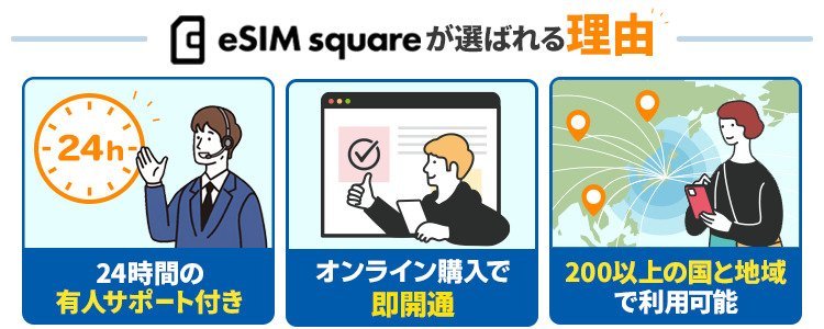 200以上の国で利用できるeSIM データ商品で紛失リスクなし チャットサポートは24時間対応 eSIM square公式 |