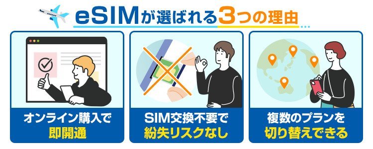 オンライン上で簡単に購入や手続きが完了するeSIMであれば、柔軟にインターネットを活用できるでしょう。